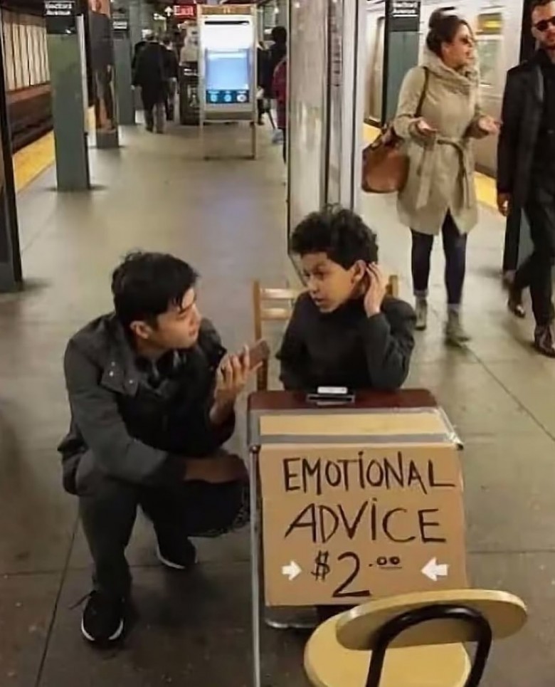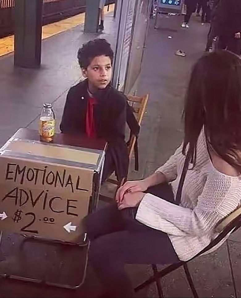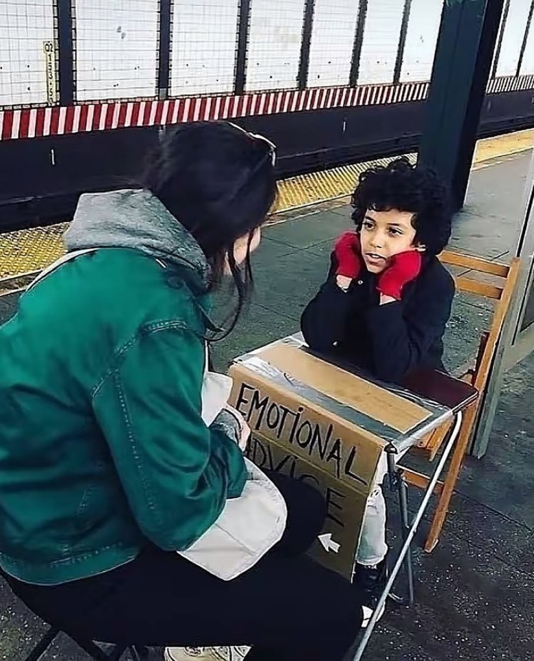 W 2016 r. 11-letni Ciro Ortiz ustawił na peronie Bedford Avenue (linia L, Brooklyn) małe stoisko z napisem „Emotional Advice” i za 2 dolary dawał krótkie, pocieszające rozmowy przechodniom. Pomysł zrodził się z chęci pomocy - i szybko obiegł media.