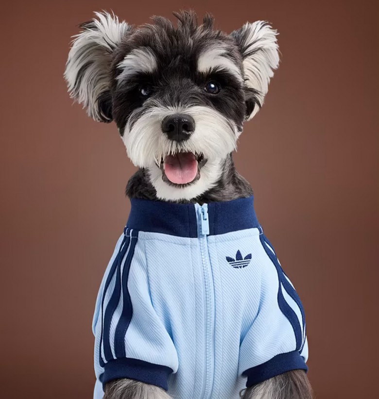 Ubrania nawiązują do klasycznych projektów marki - mają charakterystyczne trzy paski i logo Trefoil, znane z kultowych dresów noszonych przez sportowców i fanów streetwearu na całym świecie. Kolekcja oferuje różne warianty kolorystyczne i rozmiary dopasowane do psów i kotów, a niektóre modele przypominają wierne kopie ludzkich ubrań.