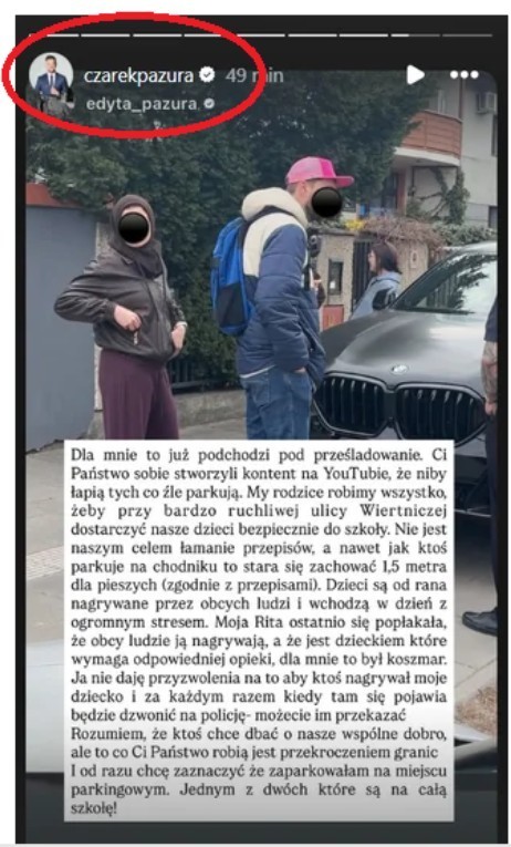 Spór wybuchł po relacjach opublikowanych przez Edytę Pazurę w mediach społecznościowych. Celebrytka napisała, że dla niej takie zachowanie zaczyna już podpadać pod prześladowanie. Podkreślała, że dzieci są od rana nagrywane przez obcych ludzi, a przez to wchodzą do szkoły w stresie. Z jej wpisów wynikało też, że rodzice nie chcą łamać przepisów dla wygody, ale próbują po prostu bezpiecznie dowieźć dzieci do szkoły przy bardzo ruchliwej ulicy.