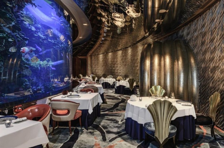 Wnętrza hotelu są pełne marmuru, złotych zdobień i bogatych detali. Goście mają do dyspozycji prywatnych lokajów, flotę luksusowych samochodów, a także możliwość przylotu helikopterem na lądowisko znajdujące się na szczycie budynku. Na terenie obiektu działają ekskluzywne restauracje, w tym podwodna sala jadalna oraz lokale serwujące dania kuchni międzynarodowej.