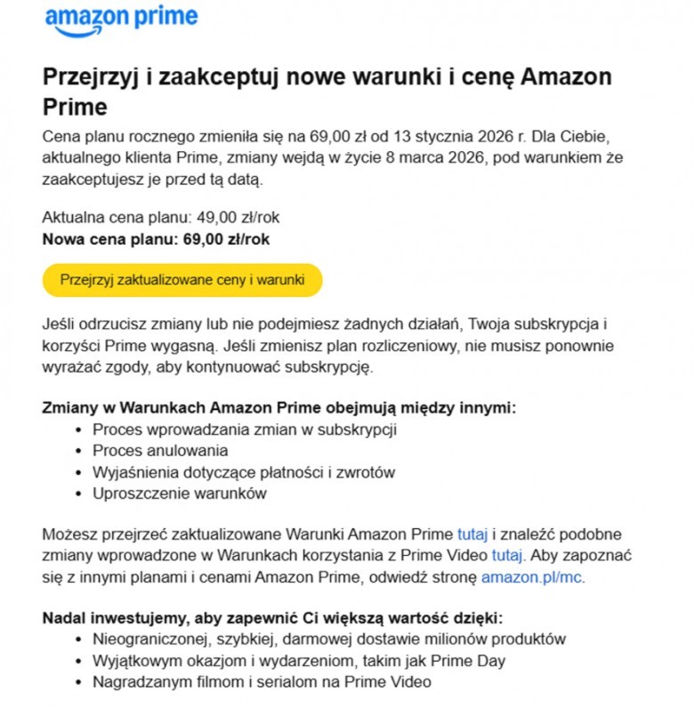 Warto przypomnieć, że Amazon Prime oferuje znacznie więcej niż tylko dostęp do biblioteki Prime Video. Pakiet Prime obejmuje również takie korzyści jak szybka i darmowa dostawa zamówień z Amazon.pl, darmowe gry oraz dodatki do gier (Prime Gaming) oraz darmową miesięczną subskrypcję na Twitchu. Mimo podwyżki, roczna subskrypcja za 69 złotych nadal pozostaje jedną z najbardziej konkurencyjnych ofert na rynku, biorąc pod uwagę zakres oferowanych usług w porównaniu do innych platform streamingowych.