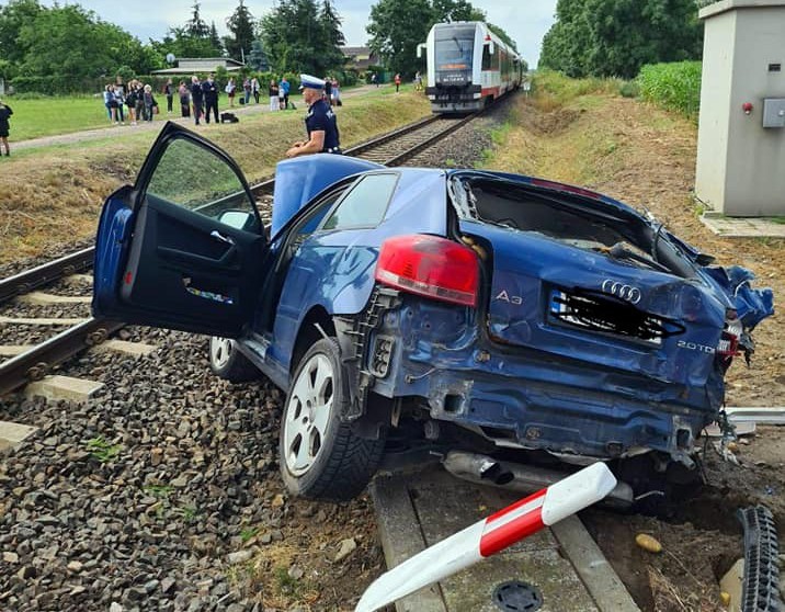 Za kierownicą audi siedziała kobieta. Jak relacjonowała później, widziała nadjeżdżający skład, jednak – według jej słów – uznała, że maszynista ją przepuszcza. Pociąg zwolnił i używał sygnałów dźwiękowych, co kobieta zinterpretowała jako „gest” pozwalający kontynuować jazdę. W efekcie wjechała bezpośrednio przed pojazd szynowy.