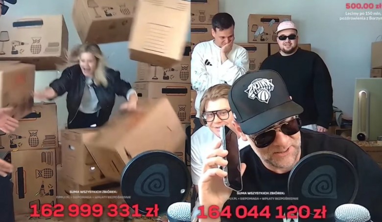 Jednym z najmocniejszych momentów był telefon Tedego do Pei. Konflikt raperów trwał od lat i był jednym z najbardziej znanych sporów w polskim hip-hopie, dlatego ich symboliczne pogodzenie się na żywo natychmiast stało się wydarzeniem samo w sobie. Media podają, że doszło do tego, gdy zbiórka przekraczała okolice 164–165 mln zł. Tede wyciągnął rękę do Rycha, a Peja odpowiedział, że przy takiej akcji i dla dobra dzieci jest gotów zostawić konflikt za sobą. Internet dostał więc scenę, której nikt nie mógł przewidzieć: dwie legendy rapu zakopujące topór wojenny nie na gali, nie w wywiadzie, ale podczas charytatywnego streama.