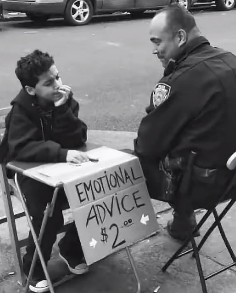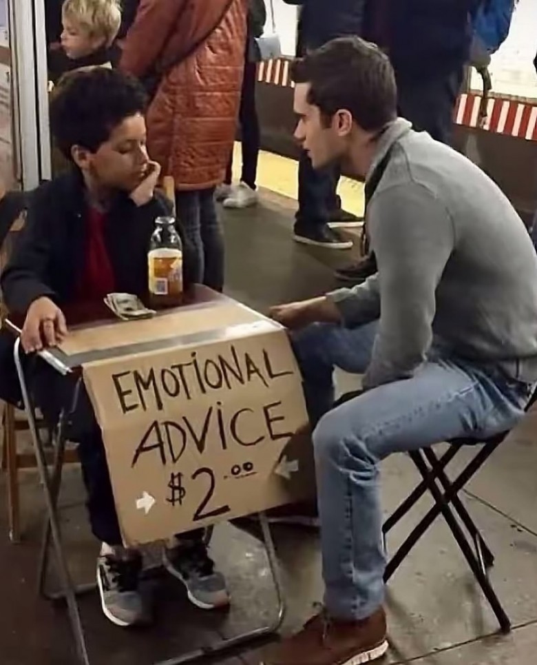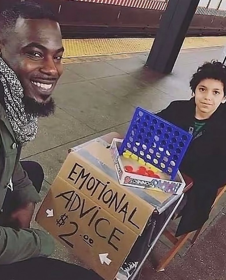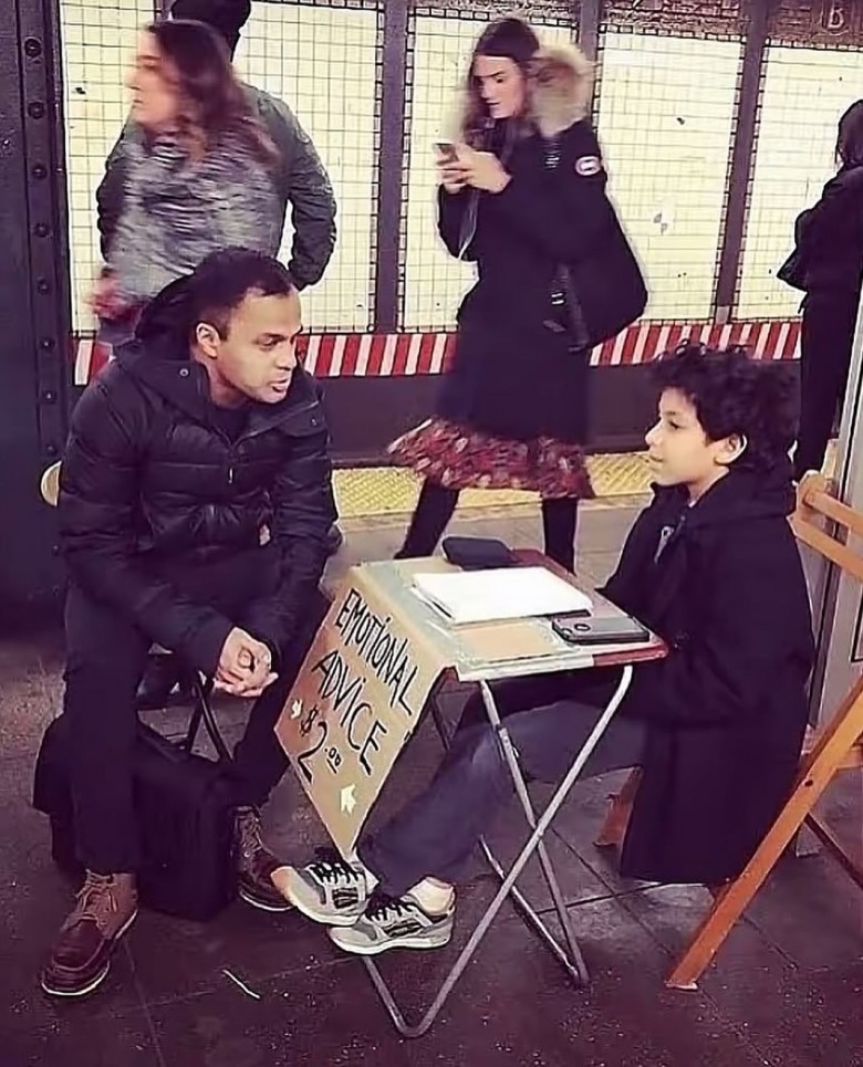 W 2016 r. 11-letni Ciro Ortiz ustawił na peronie Bedford Avenue (linia L, Brooklyn) małe stoisko z napisem „Emotional Advice” i za 2 dolary dawał krótkie, pocieszające rozmowy przechodniom. Pomysł zrodził się z chęci pomocy - i szybko obiegł media.