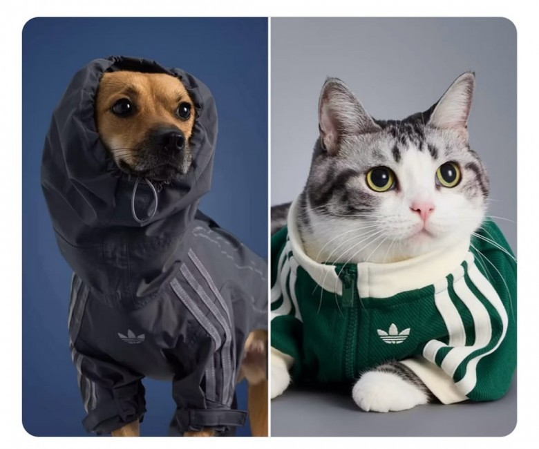 Ubrania nawiązują do klasycznych projektów marki - mają charakterystyczne trzy paski i logo Trefoil, znane z kultowych dresów noszonych przez sportowców i fanów streetwearu na całym świecie. Kolekcja oferuje różne warianty kolorystyczne i rozmiary dopasowane do psów i kotów, a niektóre modele przypominają wierne kopie ludzkich ubrań.