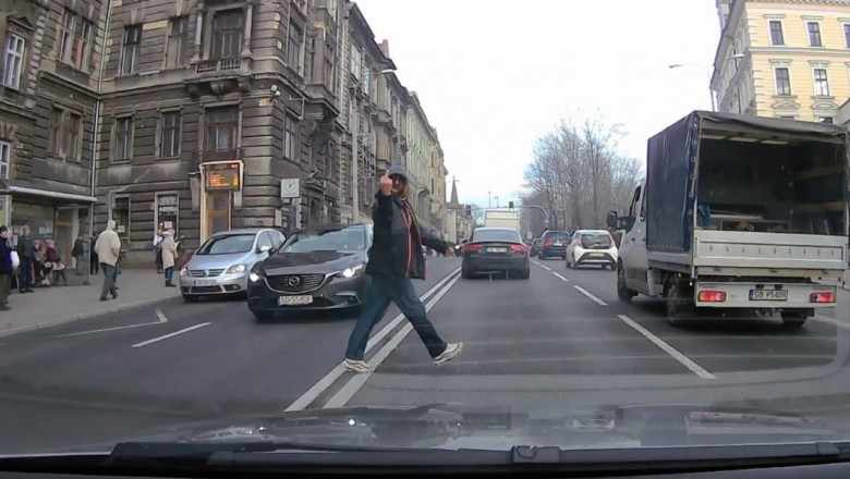 Nie tylko kierowcy i rowerzyści, ale również i piesi. Niektórzy z nich mają tak wysokie mniemanie o sobie albo chcą się na kimś tak wyżyć, że nawet nie zwracają uwagi na własne bezpieczeństwo podczas przechodzenia przez drogę, nawet w miejscach w których nie powinni tego robić. Gość z poniższego filmiku chyba uznał, że jest nieśmiertelny, co więcej wydawało mu się, że jak pokaże ręką wulgarny gest to już wszystko mu wolno. Zapewne do czasu, aż trafi na kogoś kto go nie zauważy.