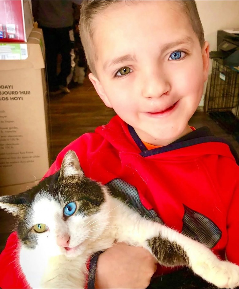 Wszystko zmieniło się, gdy jego rodzina dowiedziała się o kocie z przytuliska, który miał dokładnie te same cechy - rozszczep wargi i dwa różnokolorowe oczy. Zwierzak, nazwany Moon, został adoptowany i szybko stał się najlepszym przyjacielem chłopca.