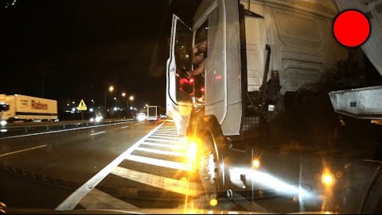 W tym momencie zajeżdża mu drogę kierowca ciężarówki który całkowicie blokuje zjazd i zaczyna gestykulować i wykrzykiwać coś do kierowcy osobówki. Nawet jeżeli coś pomiędzy tymi dwoma panami zaszło czego nie widać na nagraniu to czy tak powinien zachowywać się odpowiedzialny kierowca auta ciężarowego?
