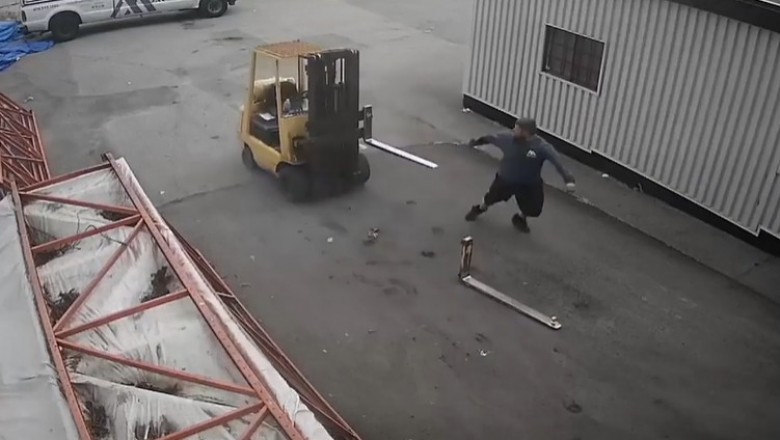 Ten gość zaliczył podwójną wtopę podczas parkowania łodzi klienta w hangarze. Postanowił, że zaparkuje ją tam za pomocą wózka widłowego. Niestety nie był to najlepszy pomysł, bo w sumie niczym tej łodzi podczas holu nie zabezpieczył. W pewnym momencie z wózka odpadł jeden widelec, a łódź pojechała sama. Odruchowo zeskoczył z wózka, aby łapać łódź. Szybko się jednak okazało, że nie był to najlepszy pomysł, bo wózek również pojechał w swoją stronę trafiając w firmowe auto. Podwójny pech i to w kilkanaście sekund.