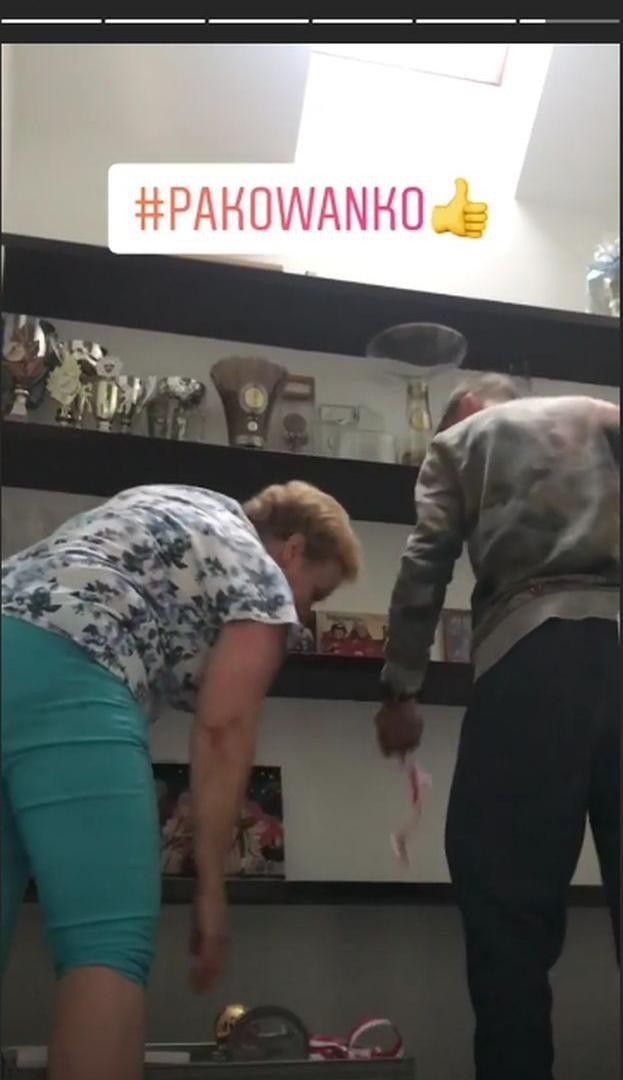Tym razem z okazji Dnia Ojca zamieściła krótką wideo relację z pakowania trofeów swojego męża. Na nagraniu widać starszą kobietę i mężczyznę, najprawdopodobniej są to Piotr Żyła i jego matka.