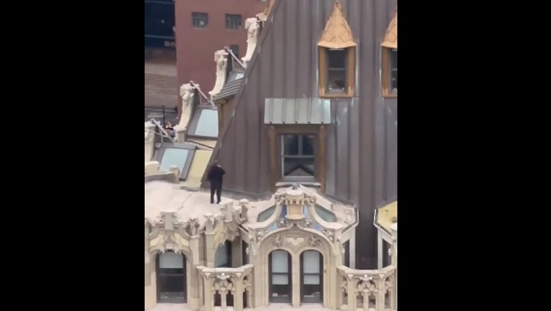 Na nagraniu możemy zobaczyć mężczyznę, który stoi na dachu budynku. Wydaje się jakby rozmawiał z kimś przez telefon. Odległość jest dosyć duża dlatego dokładnie nie widać co robi. Można się tylko sugerować jego postawą.