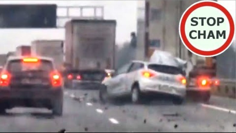 Do bardzo groźnego zdarzenia drogowego doszło na autostradzie A1 we wtorek 9 grudnia. Na nagraniu widać jak kierowca osobówki ledwo panuje nad samochodem. Jeździ całą szerokością jezdni. Gość daleko nie ujechał bo już po chwili uderzył w naczepę ciężarówki. Uderzenie było tak duże, że dosłownie rozerwało poszycie samochodu. Poniżej nagranie z tej sytuacji.