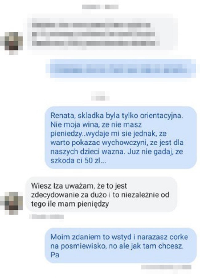 32-latka się z tym nie zgadza i nie chce uczestniczyć w tej zrzutce. Niestety jednej z mam to się nie spodobało i nie omieszkała o tym powiedzieć.