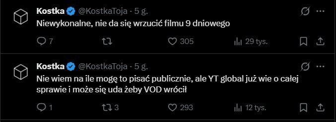 Kostka zaapelował też bezpośrednio do internautów - jeśli ktokolwiek posiada zapis zaginionych pierwszych godzin streama, powinien się z nim skontaktować. Każdy fragment może okazać się cenny.