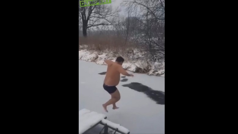 Taki właśnie specjalista znalazł się na poniższym nagraniu. Nic mu nie dało do myślenia to, że woda była zamarznięta. Myślał, że uda mu się przebić przez lód. Gdy tylko skoczył momentalnie tego pożałował. Naszym zdaniem, więcej tego nie zrobi.