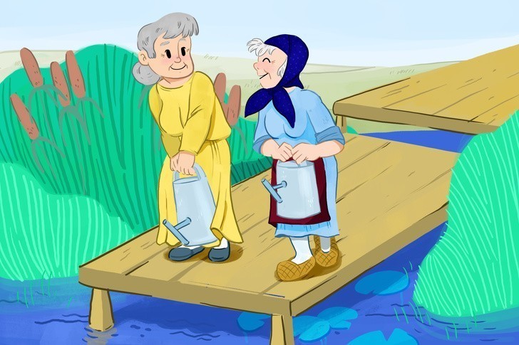 Dwie starsze panie przyszły nad rzekę aby nabrać wody do podlania swoich ogródków. Która z nich przyniesie więcej wody?
