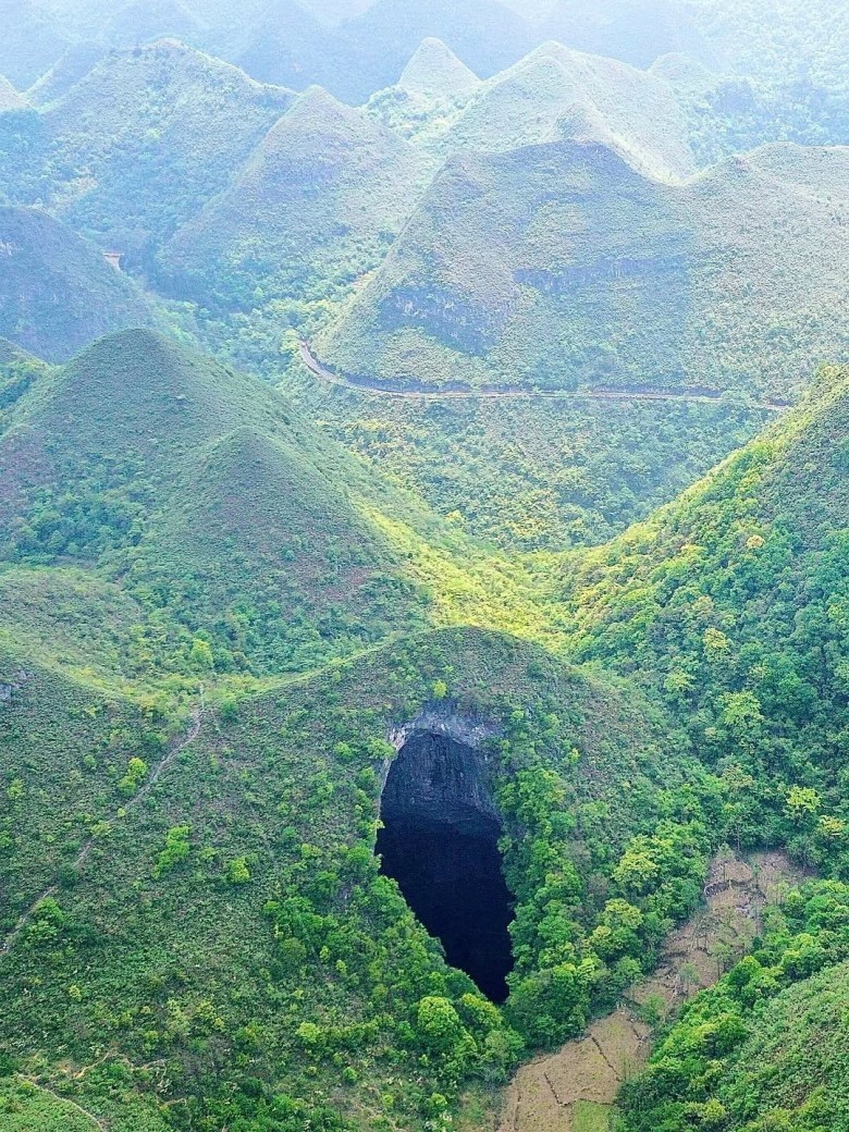 Odkrycia dokonano w regionie Guangxi Zhuang, w południowych Chinach, niedaleko wioski Ping’e w hrabstwie Leye. To właśnie tam, w słynnym obszarze krasowym wpisanym na listę światowego dziedzictwa UNESCO, geolodzy z China Geological Survey Institute of Karst Geology odkryli naturalne zapadlisko o imponujących wymiarach - około 306 metrów długości, 150 metrów szerokości i 192 metry głębokości.