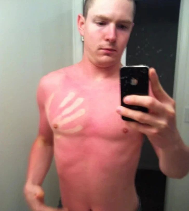 1. "Moje oparzenie słoneczne sprzed kilku lat. Miałam na sobie stanik sportowy."