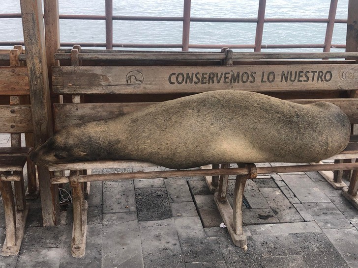 10. "Lew morski drzemiący sobie na ławce"