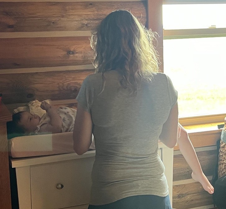 10. "Żona zmienia pieluchy naszemu synowi. To całkiem długa noga, jak na 3-miesięczne dziecko."