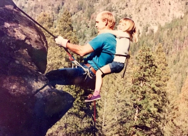 4. 4. "Mój tata podczas wspinaczki ze mną przypiętą do jego pleców, lata 90."