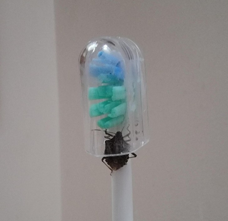 6. "A myślałem, że jestem taki mądry zakrywając główkę mojej szczoteczki do zębów."