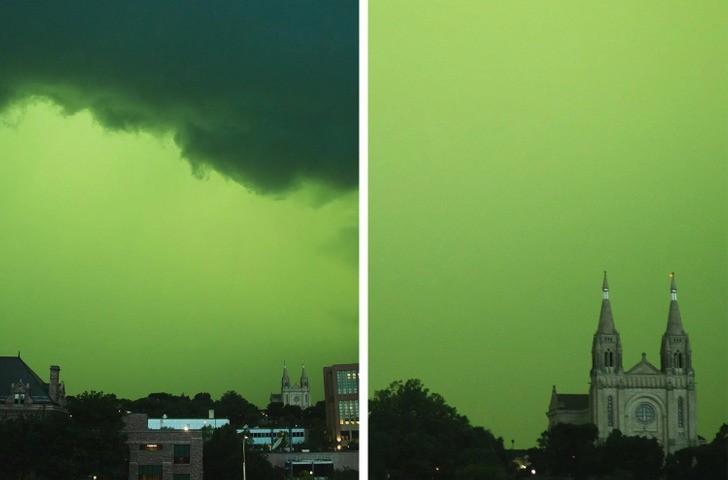 13. "Tej nocy nad naszym miastem przeszła ogromna burza, a niebo stało się zielone."