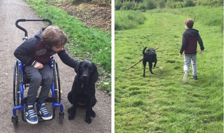 7. "8 miesięcy temu, nasz syn, który poruszał się głównie na wózku, otrzymał psa towarzyszącego. Chyba możemy śmiało stwierdzić, że poczynili razem olbrzymie postępy."