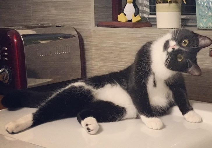 6. "Zrobiłam dzisiaj to zdjęcie mojemu chłopakowi i naszemu kotu. Nie możemy przestać się z niego śmiać."