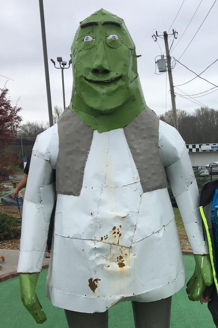 12. "Posąg Shreka na miejscowym polu do minigolfa"