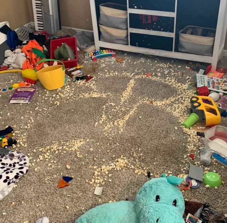 3. "Zostawiłam je same na 5 minut. W tym czasie zdążyły zrobić 'popcornowego aniołka'."