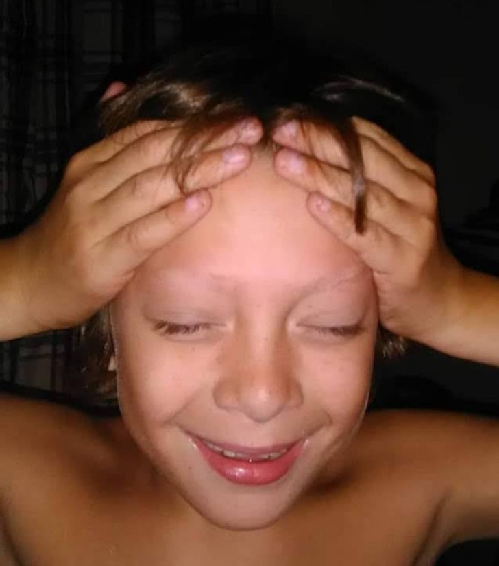 4. "Mój syn zbytnio się spieszył, by pozwolić mi dokończyć obcinać mu włosy."