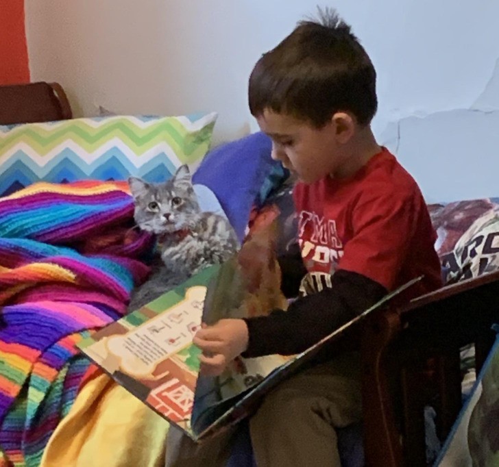 11. "Gdy weszłam do pokoju, zobaczyłam naszego 4-latka czytającego naszemu kotu."