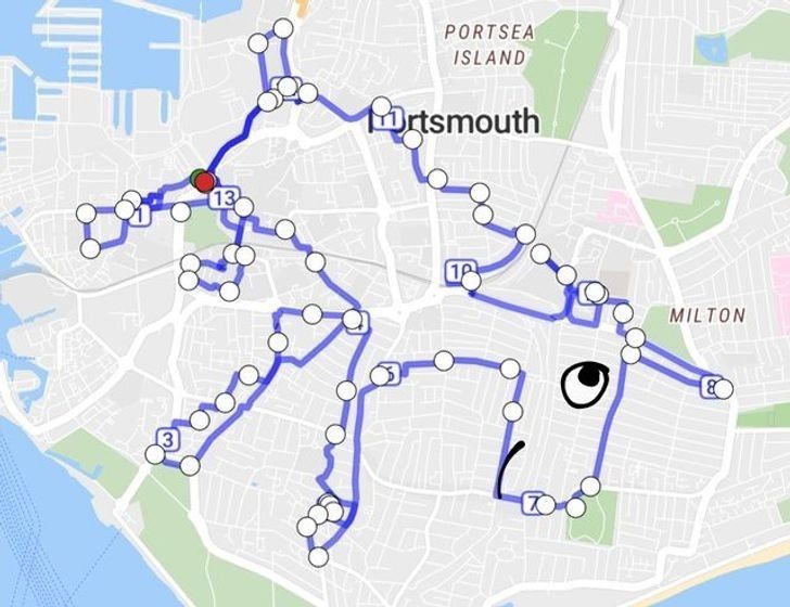 13. "Może i lubicie biegać, ale czy ukończyliście kiedyś trasę jednorożca z Portsmouth? (Poświęciłem na to zdecydowanie zbyt dużo czasu...)"