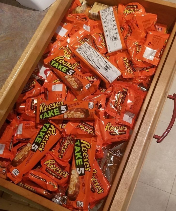 7. "Niektórzy mają szufladę z przekąskami. Ja mam szufladę z batonikami Reese."
