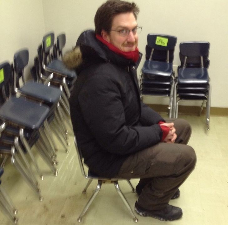 12. "Mój szef kupił 50 krzeseł na aukcji internetowej. Dopiero przy odbiorze zorientował się, że to krzesła ze szkoły podstawowej."