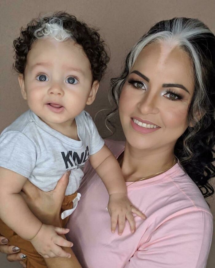 1. Matka i dziecko z naturalnymi białymi pasemkami