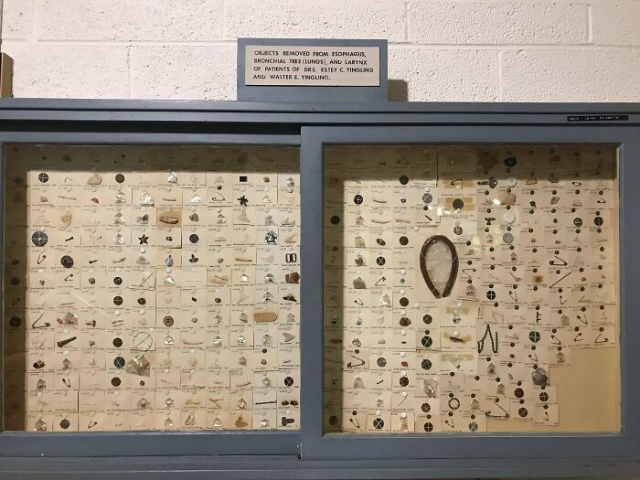 15. "W tym muzeum wisi kolekcja przedmiotów, które lekarze wyciągnęli z gardeł i płuc pacjentów."