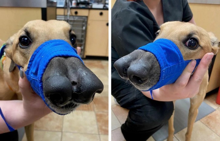 4. "Pies znajomego ma uśmiechniętą buźkę na uchu."