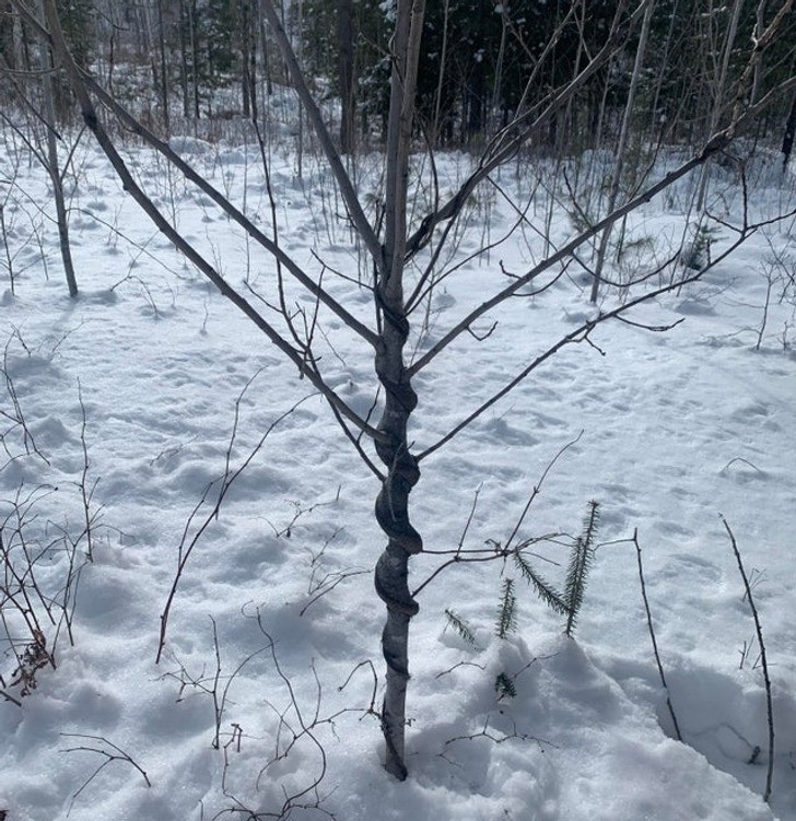 16. Pnącze owinęło się wokół tego małego drzewka i zostało przez nie pochłonięte.
