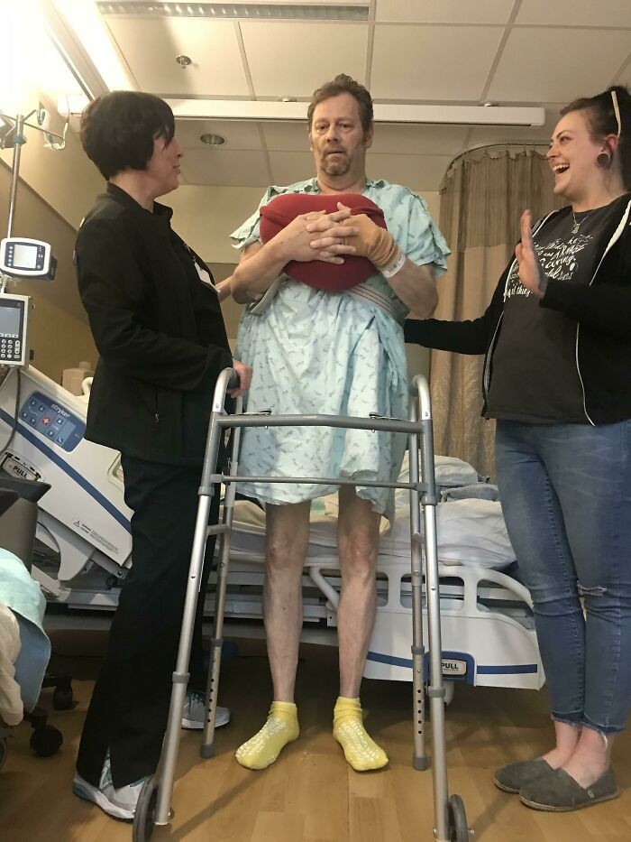 14. "Mój niesamowity tata dał dziś radę wstać o własnych siłach i zrobił siedem kroków. Jestem tak szczęśliwa (tętniak aorty i udar)"