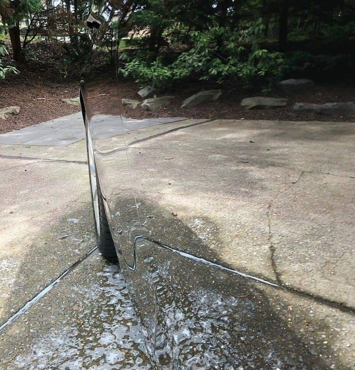 2. Ten czarny samochód został wypolerowany do tego stopnia, że wygląda jak lustro.