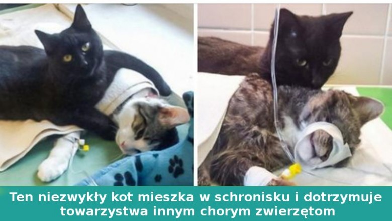 12. "Ten niezwykły kot mieszka w schronisku i dotrzymuje towarzystwa innym chorym zwierzętom."