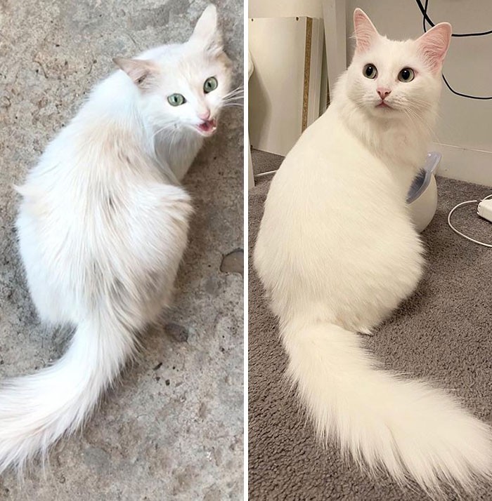 13. "Uratowałam tego kota prosto z ulicy. Zdjęcia w odstępie roku."