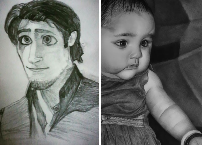 10. "Mój pierwszy rysunek kota vs jeden z niedawnych"