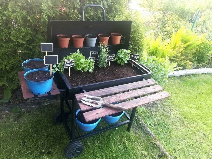 12. "Wykorzystałam stary grill do stworzenia małego ogródka z ziołami."