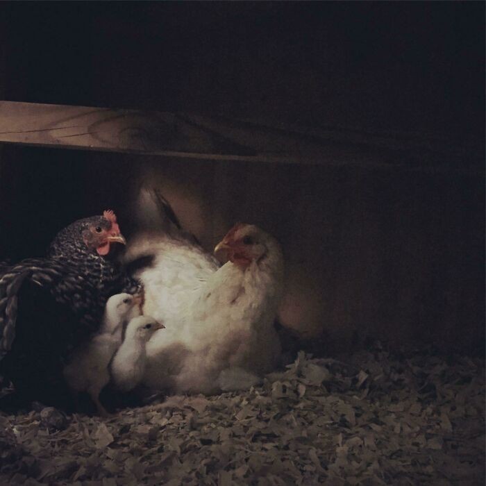 1. "Wsadziłem rękę do kurnika, by zrobić zdjęcie kurom przygotowującym się do snu."