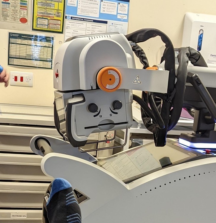15. "Ta przenośna maszyna rentgenowska wygląda nerwowo."