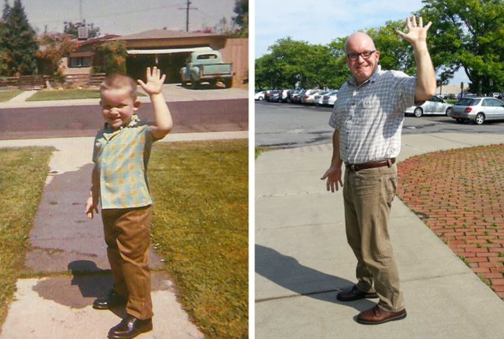 2. "Mama pokazała zdjęcie z mojego pierwszego dnia szkoły. Odtworzyłem je bez zmiany stroju."
