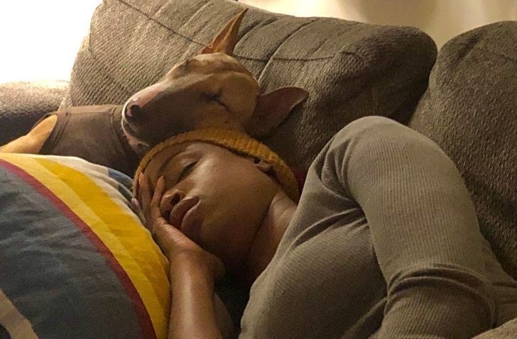 17. "Nasz pies przeszedł operację. Cała rodzinka dotrzymuje mu towarzystwa."